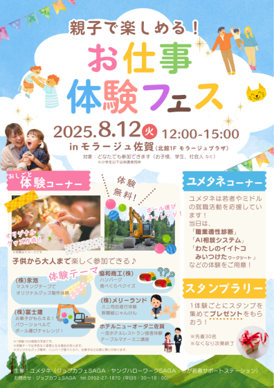 『親子で楽しめる!お仕事体験フェス』 8/12モラージュ佐賀